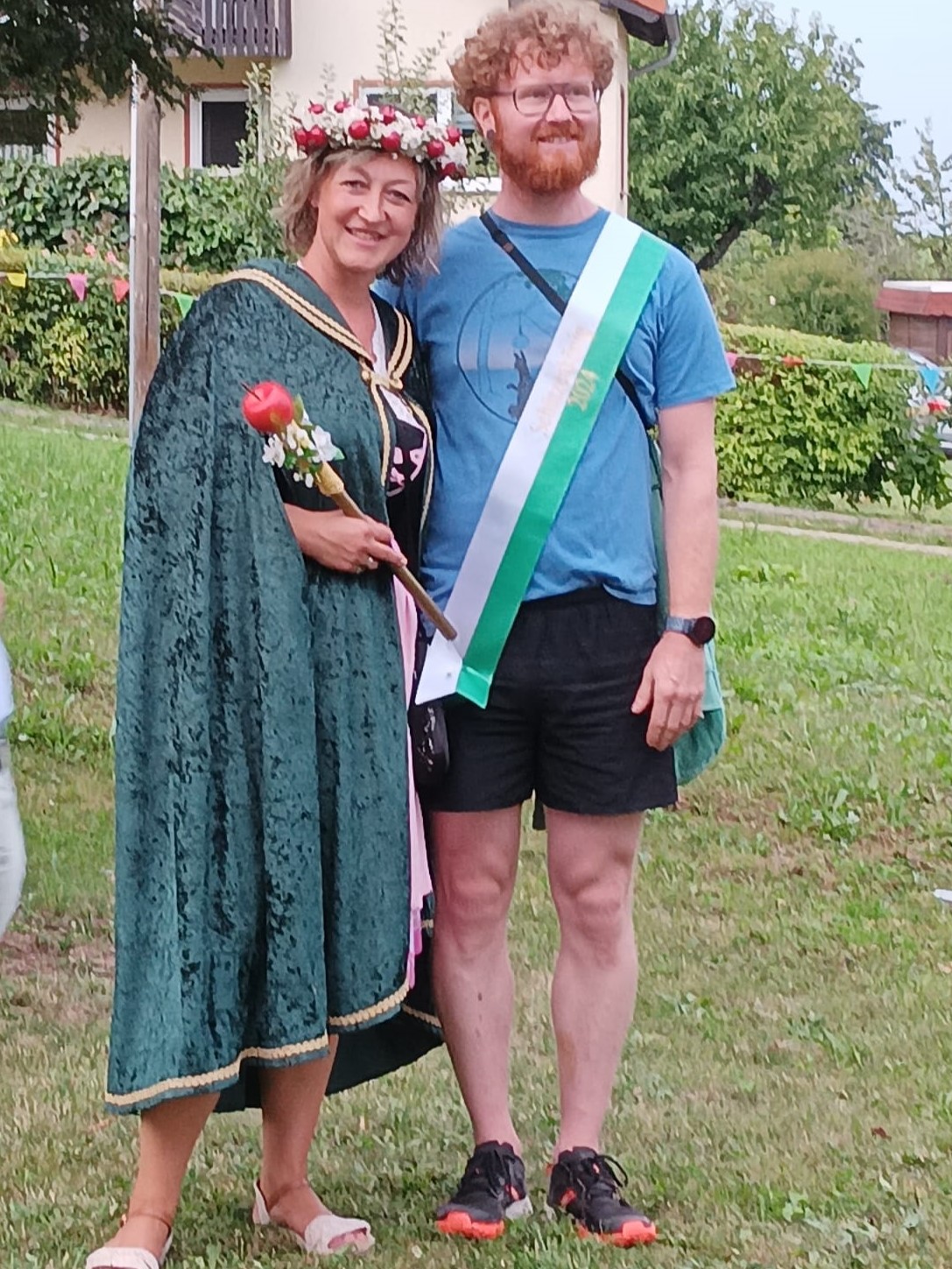 Einen gemeinsamen Amtsakt für uns beiden Hoheiten gab es noch. Die Partnergemeinde Ibach brachte als Geschenk eine Weißtanne mit, die hinter dem Pohrsdorfer Schwibbogen gepflanzt wurde. Ortsvorsteher Uwe Stoll übernahm die Aufgabe und Richard und ich haben den Baum kräftig angegossen. Wir wünschen gutes Wachsen und Gedeihen in Pohrsdorf.
