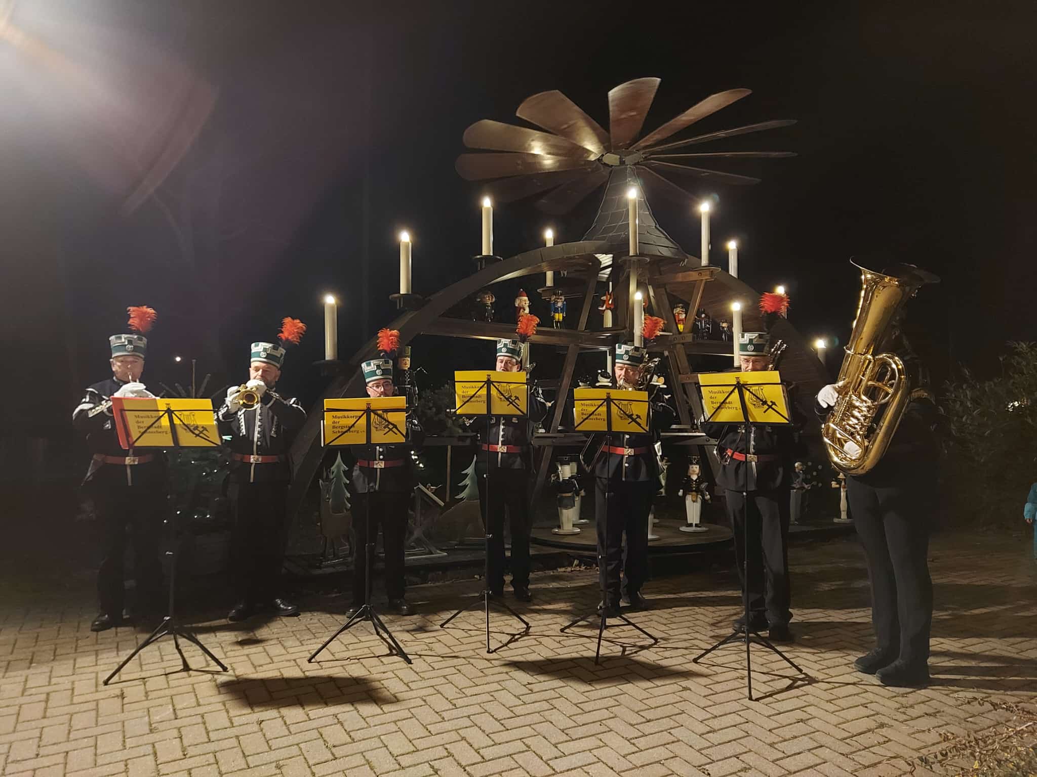 Danach spielten sieben Musiker des Landesmusikkorps Schneeberg ein wunderschönes Weihnachtskonzert für alle Pohrsdorfer und Gäste aus den umliegenden Dörfern und Städte vor unserem Schwibbogen.