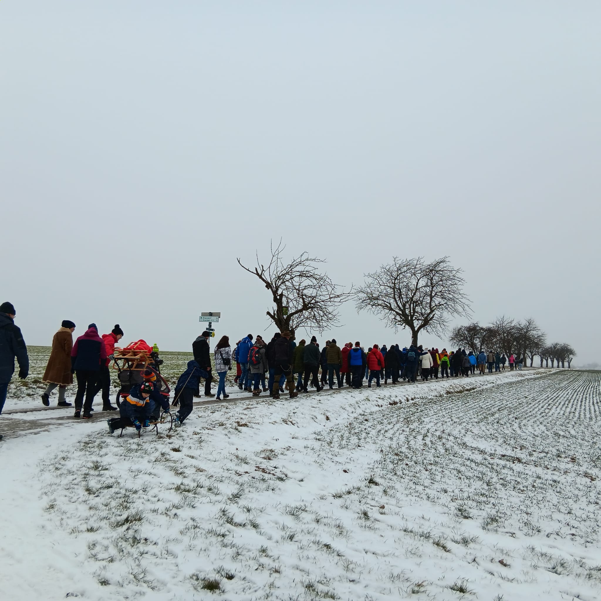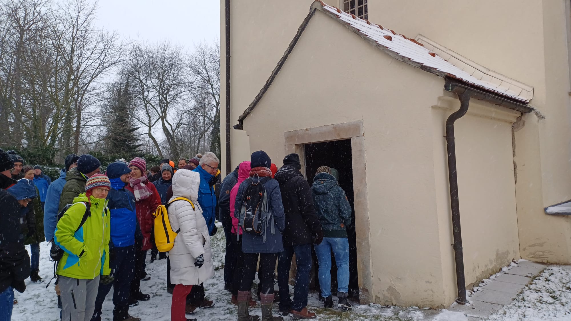 Bei anfangs freundlichem Winterwetter und später reichlich Schnee fand am 5. Januar 2025 die traditionelle Neujahrswanderung in Pohrsdorf statt. Die Route führte auf dem Kirchweg zu den Ursprüngen von Pohrsdorf bis in die Grumbacher Kirche. Ein besonderes Highlight war der Durchgang durch die sonst verschlossene Pohrsdorfer Pforte und die fachkundige Erläuterung der Deckenmalereien in der Kirche.