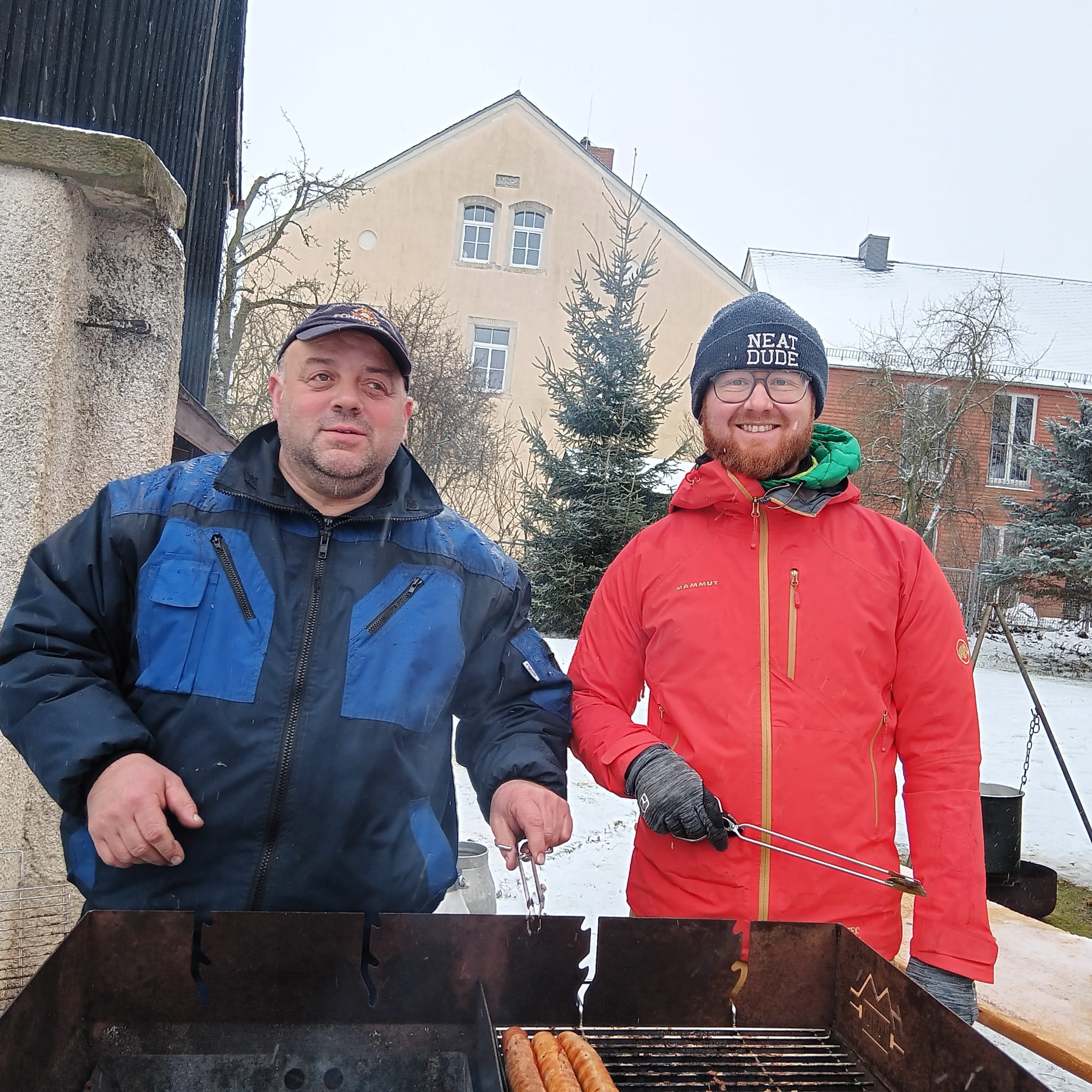 Dank der spannenden Ausführungen von Andre Kaiser erfuhren die Wanderer viel über die Geschichte Pohrsdorfs. Nach der Tour gab es auf dem Hof der Familie Demarczyk eine wohlverdiente Stärkung mit Bratwürsten und Glühwein.